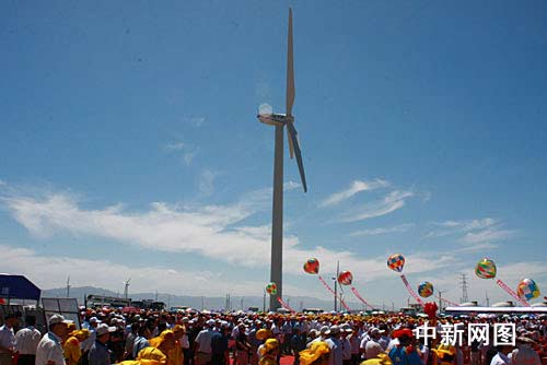 國(guó)家發(fā)改委副主任、國(guó)家能源局局長(zhǎng)張國(guó)寶今天在開(kāi)工儀式上說(shuō),受風(fēng)能資源與電力市場(chǎng)分布不平衡的影響,中國(guó)風(fēng)電的開(kāi)發(fā)建設(shè)受電力市場(chǎng)制約很大。為此,采取了“建設(shè)大基地、融入大電網(wǎng)”的發(fā)展方式,在風(fēng)能資源最豐富的區(qū)域建設(shè)千萬(wàn)千瓦級(jí)風(fēng)電基地,打造“風(fēng)電三峽”。酒泉風(fēng)電基地是率先建設(shè)的首座千萬(wàn)千瓦級(jí)風(fēng)電示范基地,已核準(zhǔn)建設(shè)項(xiàng)目的總規(guī)模500萬(wàn)千瓦,今后還將建設(shè)第二期工程。
