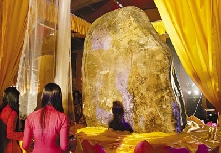越南珠寶公司Than Chau Ngoc Viet主席陶仲剛(譯音)表示,公司2006年于緬甸的官方寶石拍賣(mài)會(huì)上,購(gòu)下這塊長(zhǎng)6.5呎、闊6.5呎、高10呎的巨型翡翠,去年10月才運(yùn)抵越南。陶表示,希望日后這尊巨佛有助提升越南的國(guó)際形象。