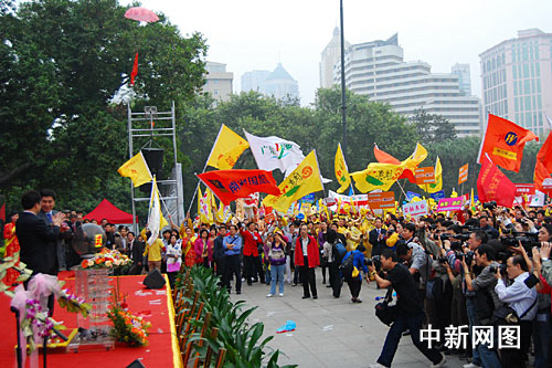 中新網(wǎng)廣州2月23日電(記者 莫非 通訊員 月明 梁婕 鐘山)廣東旅游業(yè)界2009年大利好浮出水面,國民旅游休閑計劃23日開始正式實(shí)施。廣東省各大旅業(yè)集團(tuán)、旅行社紛紛積極響應(yīng),召集了來自珠三角地區(qū)4000多名游客聚集在廣州中山紀(jì)念堂前參加啟動儀式。