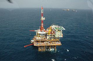 圖:墨西哥灣上的采油鉆井。陳恃雷 攝 圖片來源:經(jīng)濟(jì)參考報(bào)