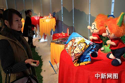 中新網(wǎng)上海12月26日電 (記者 許曉青)12月26日,由五花八門的卡通公仔“裝扮”一新的上海動(dòng)漫衍生產(chǎn)業(yè)園,在此間寶山區(qū)大場(chǎng)鎮(zhèn)揭幕。作為當(dāng)?shù)貞?yīng)對(duì)國(guó)際金融危機(jī)、擴(kuò)大內(nèi)需的新啟動(dòng)項(xiàng)目之一,園區(qū)所蘊(yùn)涵的時(shí)尚科技元素,吸引了眾多年輕卡通迷到場(chǎng)。