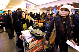 記者在攜程、游易等網(wǎng)站發(fā)現(xiàn),上海至鄭州、濟(jì)南、長(zhǎng)沙、武漢、沈陽(yáng)、南昌、南寧等二線城市航線幾乎看不到打折票?梢(jiàn),春運(yùn)“剛性”需求給航空市場(chǎng)提供了強(qiáng)大支撐,成為航空公司2009年良好的開(kāi)端。為了分享春運(yùn)“盛宴”,各航空公司紛紛加大投入,增開(kāi)航班。東航增開(kāi)千余個(gè)航班,上航增開(kāi)200多個(gè)航班,南航加開(kāi)5000余個(gè)航班。