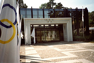圖為國際奧林匹克運(yùn)動委員會總部大門。記者 向奎觀 攝