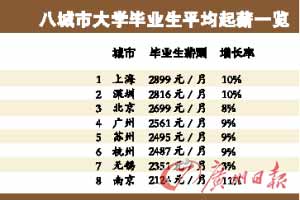 在廣州就業(yè)的大學(xué)畢業(yè)生,今年的薪酬起薪平均為2561元/月,在全國位居第四,相比去年增長了9%。