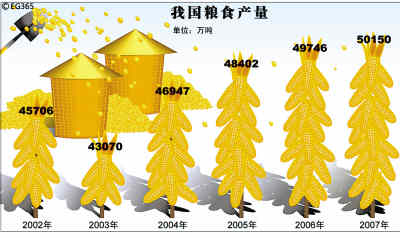 改革開放以來,我國雖然積極開拓利用兩種資源、兩個(gè)市場,但不管經(jīng)濟(jì)環(huán)境怎樣變幻,我國始終不渝堅(jiān)持以國內(nèi)為主滿足糧食需求、確保國家糧食安全的方針。進(jìn)入新世紀(jì)以來,黨和政府更采取了一系列“惠農(nóng)、興糧、富民”政策,廣大農(nóng)民種糧生產(chǎn)積極性空前增強(qiáng),全國農(nóng)業(yè)糧食連續(xù)4年增產(chǎn)。2007年,全國糧食總產(chǎn)量超過5億噸,除大豆外,谷物完全能滿足需求。目前中國糧食的對(duì)外依存度很低,糧食自給率一直保持在95%以上。同時(shí),我國糧食儲(chǔ)備也連續(xù)增長,糧食安全系數(shù)達(dá)到30%以上,遠(yuǎn)遠(yuǎn)超過聯(lián)合國糧食及農(nóng)業(yè)組織(FAO)提出的17%—18%的糧食安全線。