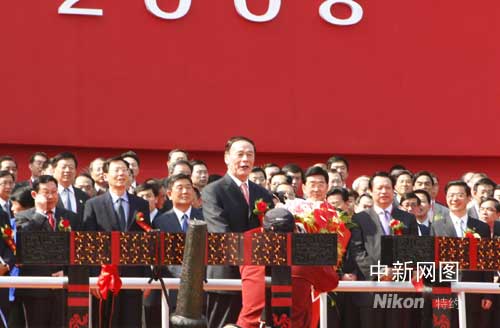 中新社武漢四月二十六日電 (記者 艾啟平)二十六日上午,第三屆中國(guó)中部投資貿(mào)易博覽會(huì)(簡(jiǎn)稱中博會(huì))在武漢隆重開幕。在開幕式上,中共中央政治局委員、國(guó)務(wù)院副總理王岐山宣布第三屆中博會(huì)開幕,香港特別行政區(qū)行政長(zhǎng)官曾蔭權(quán)、澳門特別行政區(qū)行政長(zhǎng)官何厚鏵等出席。