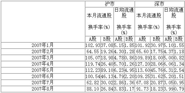 表6 2007年我國股市換手率情況