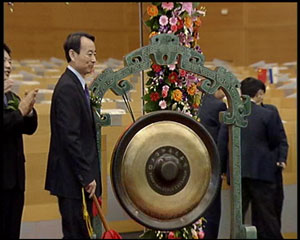中石油董事長蔣潔敏:“我感覺到我拿的這個(gè)鑼槌非常重,這個(gè)鑼槌的分量就是公司的責(zé)任。我感覺到任務(wù)重、責(zé)任大!