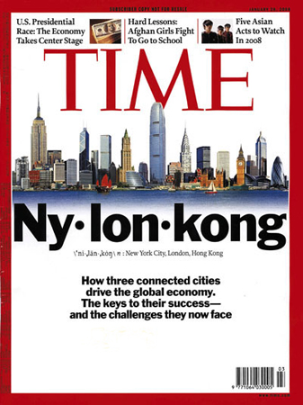 中新網(wǎng)1月20日電 著名雜志《時代》周刊在最新一期選了紐約、倫敦和香港三城作為全球化的模范,敘述這個以共同經(jīng)濟文化為特征的“三城故事”,文章并創(chuàng)造了一個新詞“紐倫港”(即紐約,倫敦,香港),指出認識了這3個國際性大都會,即等同認識了這個全球化時代。