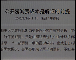 2008年1月22日,多年來備受質(zhì)疑的手機(jī)漫游費(fèi)終于踏上了破冰之旅,在北京河南大廈四層的國際會(huì)議廳里,降低移動(dòng)電話國內(nèi)漫游通話費(fèi)上限標(biāo)準(zhǔn)聽證會(huì)如期舉行。而會(huì)場外的狹窄通道,早已被各路媒體圍得水泄不通,大家最關(guān)心的問題莫過于“漫游”在公眾視野范圍外的漫游費(fèi)成本是否在聽證會(huì)上予以公開?