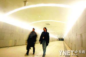 記者在“金臺(tái)夕照”站地下一層站臺(tái)看到,C出入口和新址的通道施工仍在緊張進(jìn)行。坐地鐵10號(hào)線到央視新址的乘客,只需要通過(guò)“金臺(tái)夕照”站C出入口就可以直接進(jìn)入央視大樓。記者注意到,C出入口指向燈箱上直接標(biāo)示“中央電視臺(tái)”,這是北京地鐵首次將單位名稱標(biāo)入地鐵指向燈箱。