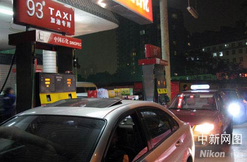 圖為6月19日深夜,北京部分司機(jī)獲悉成品油調(diào)價消息后,趕在20日凌晨零點前在加油站排起長龍加油。 記者 余瑞冬攝