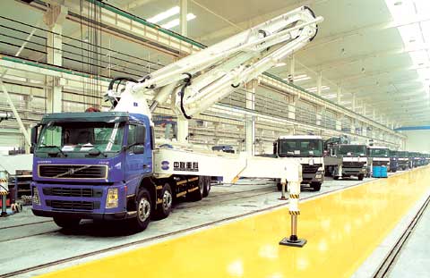 中聯(lián)重科的泵車(chē)生產(chǎn)線(xiàn)