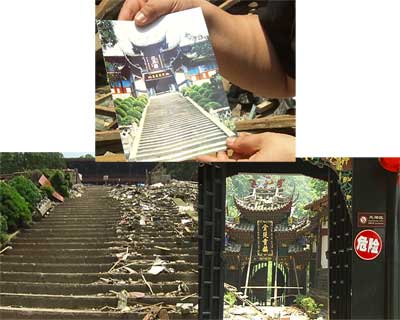 記者從游船上看到了樂山大佛的全貌,盡管面臨著8級地震的挑戰(zhàn),但是有著1300多年歷史的樂山大佛卻紋絲不動,景區(qū)內(nèi)的凌云寺、靈寶峰的靈寶塔、東坡樓、烏尤寺也是完好無損。通向大佛的小路,地震前這條小路上擠滿游客,想到近處觀看大佛,至少要走一個小時,而現(xiàn)在我們看到盡管景區(qū)非常安全,但是游客卻非常稀少。