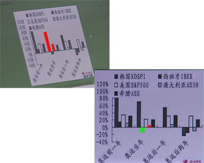 記者注意到,奧運召開的當(dāng)年,韓國和美國的股市都有大幅上漲的表現(xiàn),但與此相反的是,西班牙和澳大利亞的股市卻是下跌或持平,那么,同為奧運舉辦的國家,股市的表現(xiàn)為什么卻截然相反?
