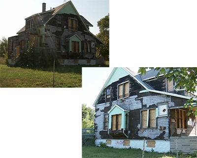 記者:“我身后的這棟住宅在兩年前的售價(jià)是6.5萬美元,最近卻被一家銀行以1美元的價(jià)格甩賣出去,有報(bào)道稱,由于樓市低迷和房屋稅款等項(xiàng)目的支出,買主可能連這區(qū)區(qū)1美元的投資都難以收回成本。”