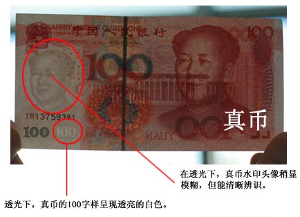 一看。即看鈔票上的固定人像水印、白水印、光變油墨面額數(shù)字、交印對(duì)應(yīng)圖案、隱形面額數(shù)字等特征。據(jù)介紹,真鈔票的“固定人像水印”有立體感,清晰度高,“白水印”的高透光反光性強(qiáng),“交印對(duì)應(yīng)圖案”是一個(gè)圓形方孔錢。這三處在迎光透視時(shí)都可以清楚看見;光源角度發(fā)生改變時(shí),真幣的“光變油墨面額數(shù)字”會(huì)有綠色和藍(lán)色顏色的漸變;此外,在與眼睛平行上下抖動(dòng)時(shí),可以看到“100”的隱形面額數(shù)字。