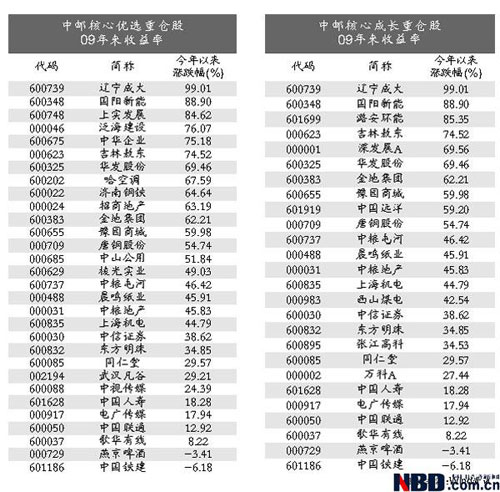 一季度業(yè)績(jī)排名第一的中郵核心優(yōu)選,2008年年報(bào)顯示,配置比例超過(guò)凈資產(chǎn)1%的30只股票中,8只是地產(chǎn)股,包括上實(shí)發(fā)展、泛海建設(shè)、中華企業(yè)、華發(fā)股份、招商地產(chǎn)、金地集團(tuán)、中山公用和中糧地產(chǎn),而這8只地產(chǎn)股都是四季報(bào)中并未公布,年報(bào)中剛剛露臉的隱形重倉(cāng)股。