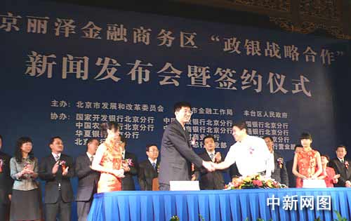 簽約儀式上,北京麗澤金融商務(wù)區(qū)開發(fā)建設(shè)指揮部辦公室與國家開發(fā)銀行、建設(shè)銀行、中國銀行、農(nóng)業(yè)銀行、工商銀行、交通銀行、華夏銀行、北京農(nóng)商行、興業(yè)銀行、北京銀行、中信銀行、民生銀行等12家銀行的北京分行,分別簽署了“政銀戰(zhàn)略合作”協(xié)議。