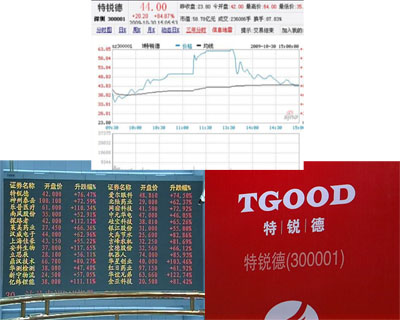 青島特銳德被眾多媒體稱為“創(chuàng)業(yè)板第一股”,第一家上會(huì)、第一家審核通過、第一個(gè)發(fā)布招股書、并獲得創(chuàng)業(yè)板001號(hào)證券代碼。今天,特銳德收盤于44元,較發(fā)行價(jià)上漲約85%。當(dāng)初投資特銳德的7名自然人其身價(jià)都已過億。