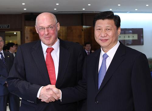在會見保爾森時,習(xí)近平說,中美都是世界上有重要影響的國家。在推動世界經(jīng)濟(jì)復(fù)蘇和可持續(xù)增長、處理國際和地區(qū)熱點問題以及維護(hù)世界和平與安全等方面,中美兩國擁有廣泛的共同利益,肩負(fù)著重要責(zé)任。中方一貫高度重視中美關(guān)系,愿與美方共同努力,尊重彼此核心利益和重大關(guān)切,妥善處理分歧和敏感問題,加強(qiáng)各領(lǐng)域?qū)υ、交流與合作,推動中美關(guān)系沿著積極合作全面的軌道向前發(fā)展。習(xí)近平深入闡述了中方在中美經(jīng)貿(mào)關(guān)系、人民幣匯率等問題上的原則立場,期待保爾森繼續(xù)發(fā)揮影響力,為促進(jìn)中美在經(jīng)濟(jì)金融領(lǐng)域的對話合作和后國際金融危機(jī)時期兩國經(jīng)濟(jì)關(guān)系健康穩(wěn)定發(fā)展發(fā)揮積極作用。