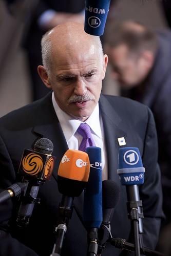 5月7日,希臘總理帕潘德里歐抵達(dá)比利時(shí)首都布魯塞爾歐盟委員會(huì)總部后接受采訪。歐元區(qū)16國(guó)領(lǐng)導(dǎo)人7日晚間在布魯塞爾召開特別峰會(huì),評(píng)估各國(guó)議會(huì)對(duì)2日啟動(dòng)的希臘救助機(jī)制的審批情況,并重點(diǎn)討論如何加強(qiáng)歐元區(qū)經(jīng)濟(jì)治理以及強(qiáng)化對(duì)成員國(guó)的財(cái)政監(jiān)督問題。 新華社發(fā)(莫納斯攝)
