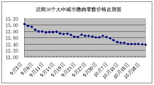中新網10月22日電 國家發(fā)改委網站消息稱,據國家發(fā)展改革委價格監(jiān)測中心監(jiān)測,上周(10.15-10.19,下同)全國36個大中城市豬肉(精瘦肉)集市平均零售價格每500克為12.40元,比上期(10.8-10.12,下同)下降0.48%。其中,16個城市豬肉價格小幅下降,其它城市豬肉價格與上期基本持平或略有上漲。