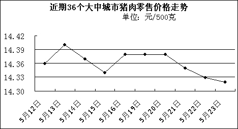 中新網(wǎng)5月26日電 中國國家發(fā)改委網(wǎng)站消息,據(jù)國家發(fā)改委價格監(jiān)測中心監(jiān)測,上周(5月19日—5月23日)36個大中城市豬肉(精瘦肉)平均零售價格每500克為14.35元,比前一周(5月12日—5月16日)下降0.14%。