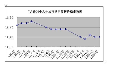 中新網(wǎng)7月21日電 國(guó)家發(fā)改委網(wǎng)站稱(chēng),據(jù)國(guó)家發(fā)展改革委價(jià)格監(jiān)測(cè)中心監(jiān)測(cè),上周(7月14日~7月18日)全國(guó)36個(gè)大中城市集市、超市豬肉(精瘦肉)平均零售價(jià)格每500克為14.40元,比前一周(7月7日~7月11日,下同)下降0.28%。