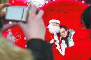 17:30,大望路地鐵站門口。捧著白色泡沫塑料箱子賣花的小販如此“教育”一位男顧客。記者發(fā)現(xiàn),雖然明知道這種插在塑料箱子里的花根本過不了夜就會(huì)枯萎,雖然小販們趁節(jié)日“坐地起價(jià)”,往常10塊一捧的玫瑰如今漲到了50塊,但咬牙跺腳買下圣誕花的男士仍為數(shù)不少。