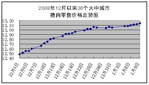 中新網(wǎng)1月12日電 據(jù)國家發(fā)改委網(wǎng)站消息,據(jù)國家發(fā)展改革委價格監(jiān)測中心監(jiān)測,上周(2009年1月5日~2009年1月9日,下同)全國36個大中城市集市、超市豬肉(精瘦肉)平均零售價格每500克為13.11元,與前一周(2008年12月29日~2008年12月31日,下同)相比上漲0.46%。