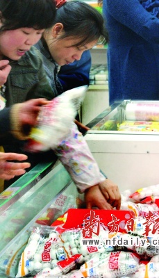 據(jù)了解,目前速凍湯圓有專門的產(chǎn)品國家標(biāo)準(zhǔn),而現(xiàn)場制作的元宵產(chǎn)品,其主要質(zhì)量依據(jù)多為企業(yè)標(biāo)準(zhǔn)。據(jù)國家食品質(zhì)量安全監(jiān)督檢驗(yàn)中心相關(guān)負(fù)責(zé)人介紹,因?yàn)樵驕珗A的餡多半會使用甜味劑,并在部分彩色湯圓中使用色素,今年將著重檢查產(chǎn)品的添加劑使用情況,并特別提醒消費(fèi)者選購有QS標(biāo)志的速凍產(chǎn)品。(記者 吳旦穎)