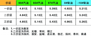 調(diào)整后的成品油價(jià)格,南京地區(qū)90#汽油從4.60元/升上調(diào)為4.81元/升,每升上漲0.21元;