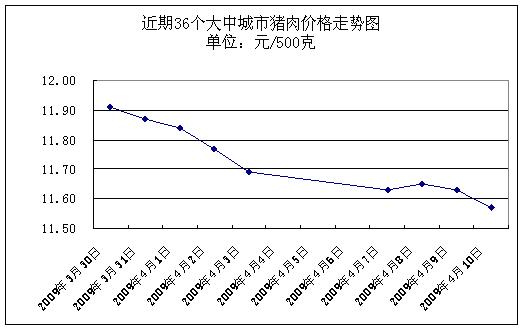 中新網(wǎng)4月13日電 據(jù)國(guó)家發(fā)展改革委價(jià)格監(jiān)測(cè)中心監(jiān)測(cè),上周(2009.4.7-2009.4.10,下同)36個(gè)大中城市集市、超市豬肉(精瘦肉)平均零售價(jià)格每500克為11.62元,與前一周(2009.3.30-2009.4.3,下同)相比下降1.69%。