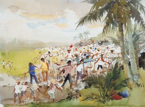 我鉆進椰子林作畫,其熱無比,連油色的錫管都燙手。忘了在何處,林中小蟲特多,咬得緊,穿著長褲、長袖襯衣,且將袖口和衣領都包得嚴嚴實實,但回到宿店才知滿身都是紅塊塊,奇癢難忍,店主頗可憐我,說:氓!氓!我聽不懂廣東話,她用筆寫,原來是蚊。