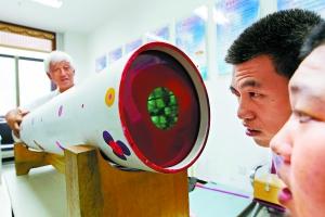 ▲ 老李參加了殘聯(lián)的幫扶活動(dòng),義務(wù)輔導(dǎo)智障人士制作簡單的萬花筒,進(jìn)行康復(fù)訓(xùn)練。為了讓學(xué)員們產(chǎn)生興趣,他特意搬來自己制作的目前國內(nèi)最大的萬花筒,長達(dá)1.4米。