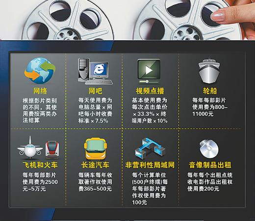 除網(wǎng)吧、長途車外,影著協(xié)還將逐步推進網(wǎng)絡、視頻點播、飛機、火車、非營利性局域網(wǎng)、音像制品出租等領域電影使用費的收取。