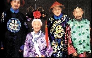 2002年,黃宗江(左三)、黃宗洛、黃宗英、黃宗漢兄妹4人共同參加了電視劇《大柵欄》的演出。 圖片據(jù)2009年9月10日 《人民日?qǐng)?bào)》海外版