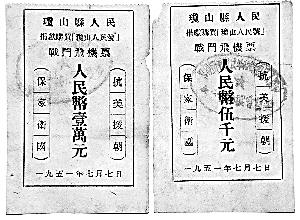 海口莫先生家里保存著兩張瓊山縣發(fā)動(dòng)百姓向志愿軍捐款,購買“瓊山人民號(hào)”飛機(jī)的證明捐款票證。 沈善東 攝