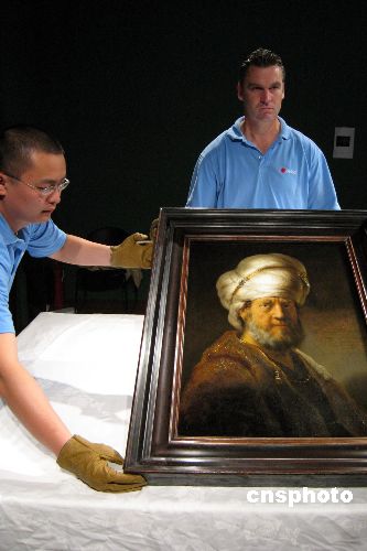 十七世紀荷蘭繪畫大師倫勃朗的代表作“東方人”十月二十五日亮相上海博物館。“荷蘭阿姆斯特丹國立博物館珍藏展”十一月三日起在上博舉辦,將展出十七世紀荷蘭油畫、版畫、銀器等珍貴文物,其中包括倫勃朗本人及其畫室的四件油畫作品和二十幅銅版畫精品。這是倫勃朗作品首次來華展出。中新社發(fā) 姜煜 攝