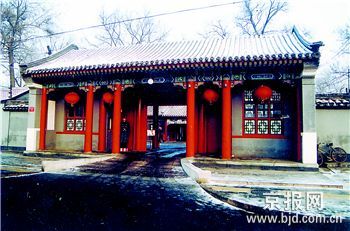 張自忠路23號,舊時的門牌據分析可能是鐵獅子胡同5號,后曾改為地安門東大街23號,在張自忠路的西段路北,坐北朝南,是一座由東、西3個院落組成的宅院,建筑面積1500平方米。街門面南,是面闊三間的府門,府門兩側各有1間倒座南房,應是當年的警衛(wèi)室和回事房(傳達室)。西院的一進院有正房5間,東、西廂房各5間;二進院有正房5間,東耳房3間,西廂房5間,東廂房1間。東院有南房3間,東房5間,北部為花園,花園內有假山、亭軒等建筑;宅院四周有回廊環(huán)繞。當年,孫中山先生住在西院二進院的正房。孫中山先生逝世后,治喪委員會決定在鐵獅子胡同孫中山居室門口懸掛“孫中山先生逝世紀念室”匾。該室為內外套間,室內陳設簡樸。外間西墻上鑲著一長方形漢白玉刻石,上刻“中華民國十四年三月十二日上午九時二十五分孫中山先生在此壽終”,刻石上方懸掛孫中山遺像,遺像右邊鏡框里為《總理遺囑》,左邊鏡框里為《致蘇聯書》,靠墻的條案上放著《建國方略》、《中山全書》等,條案兩側各有一個花架,花架上擺著青松造型盆景。