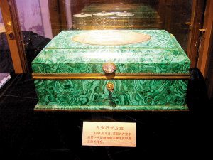 1954年9月,蘇聯(lián)共產(chǎn)黨中央第一書記赫魯曉夫贈(zèng)送毛澤東的孔雀石首飾盒。