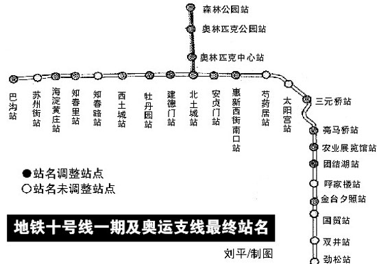 記者對(duì)比此前公布的站名后發(fā)現(xiàn),最終確定的站名版本發(fā)生了很大變化,十號(hào)線(xiàn)一期共有14座站名發(fā)生變化,奧運(yùn)支線(xiàn)沿線(xiàn)站名則全部“變身”。