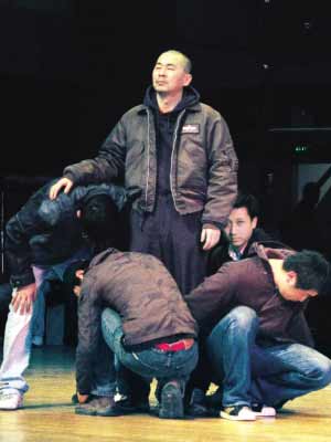 在片場以嚴(yán)厲著稱的尹導(dǎo)在排練場上也不改其作風(fēng),一會兒忙著指揮工作人員在每個確定走位處貼上地標(biāo),給每樣道具的位置做標(biāo)記,一會兒吆喝兩句“精神集中,每一遍都有新要求……”難怪在談到導(dǎo)演時,韓童生毫不諱言:“尹導(dǎo)就像一個幽靈、魔鬼,他的嚴(yán)格帶給我巨大的壓力,每天的排練都很痛苦,在這種窒息的環(huán)境中我們要做到的就是靈魂出竅!碑(dāng)然,在演員表現(xiàn)精彩的時候,尹力也會拿起相機一陣狂拍,并不時要求全場演員鼓掌慶賀;而當(dāng)演員表演達(dá)不到要求時,尹導(dǎo)更是親自做起了示范,其生動的肢體語言不時引起全場的爆笑。