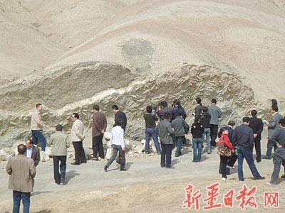 2007年9月,中德科學(xué)家聯(lián)合科考組途經(jīng)鄯善縣以東約20公里的戈壁灘附近?茖W(xué)家們坐在一處山丘下休息,突然一塊巖石從山丘上脫落。