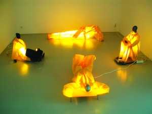 參展“融超經(jīng)驗2008”的23位藝術(shù)家中,既有像庫奈利斯這樣享譽國際的名藝術(shù)家,也有初出茅廬的青年人。在開幕式上,記者看到了如今旅居羅馬的庫奈利斯的三個“無題”裝置藝術(shù),還有喬治·拉帕斯的“發(fā)光雕塑”與盧卡斯·薩馬拉斯的《鏡中的房間》。喬治·拉帕斯介紹,他的靈感來自街上的燈箱:“當(dāng)光源的光向四處彌漫,四周的氛圍都發(fā)生了變化!