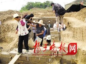 南朝大墓挖掘現(xiàn)場(chǎng)。