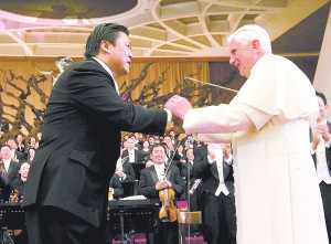 不久前,美國(guó)費(fèi)城交響樂(lè)團(tuán)重返北京,特別紀(jì)念35年前那次對(duì)中美關(guān)系產(chǎn)生積極影響的“破冰之旅”,而就在一個(gè)月前,中國(guó)愛(ài)樂(lè)樂(lè)團(tuán)也同樣擔(dān)當(dāng)起了“融冰”的角色,遠(yuǎn)赴梵蒂岡,在宏偉的保羅六世禮堂,為教皇本篤十六世及數(shù)千名教眾演奏了莫扎特的《安魂曲》和中國(guó)樂(lè)曲《茉莉花》等。演出結(jié)束,教皇不僅親自上臺(tái)發(fā)表演講,還和余隆等中國(guó)藝術(shù)家親切交談并合影留念。時(shí)至今日,中國(guó)愛(ài)樂(lè)樂(lè)團(tuán)音樂(lè)總監(jiān)余隆仍然對(duì)這次演出頗感興奮,他的興奮也許超越了一個(gè)樂(lè)團(tuán)榮耀的范疇,而是作為參與者見(jiàn)證了一段歷史。