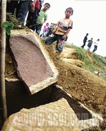 發(fā)現(xiàn)古墓的工人易德忠不停地拿著相機(jī)轉(zhuǎn)悠,見(jiàn)到記者他遺憾的說(shuō),“為了保護(hù)墓室,我們已按要求回填了泥土,恐怕在發(fā)掘完成前,你都見(jiàn)不到有著大柱子、梯步的墓室和精美的墓門(mén)板咯!惫拍谷含F(xiàn)場(chǎng),記者只見(jiàn)到了未被封嚴(yán)的墳?zāi)苟纯,其上已?jīng)放置了大石板。墓里淌滿了水,但沒(méi)有異味。