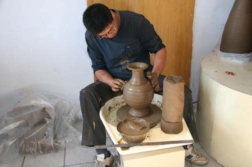 工人正在制作勃利黑陶
